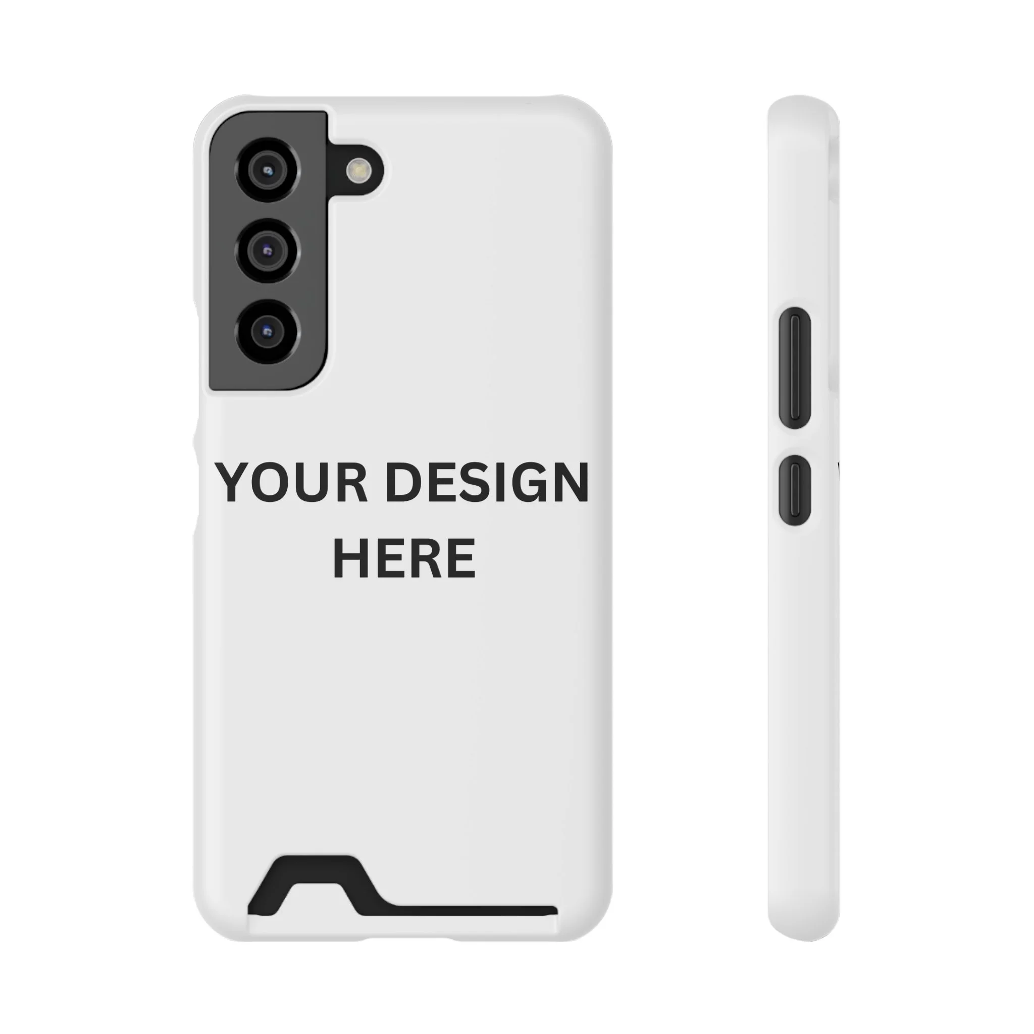 This phone case-cardholder combo will keep essential items safe in one place. Trust the polycarbonate to keep it impact-resistant through regular wear and tear. Create your flashy designs, print them all over the exterior, and choose between a glossy or matte finish. If your customers buy it as a present, gift packaging is available. Compatible with iPhone 13, and Samsung Galaxy S21, S22 models.